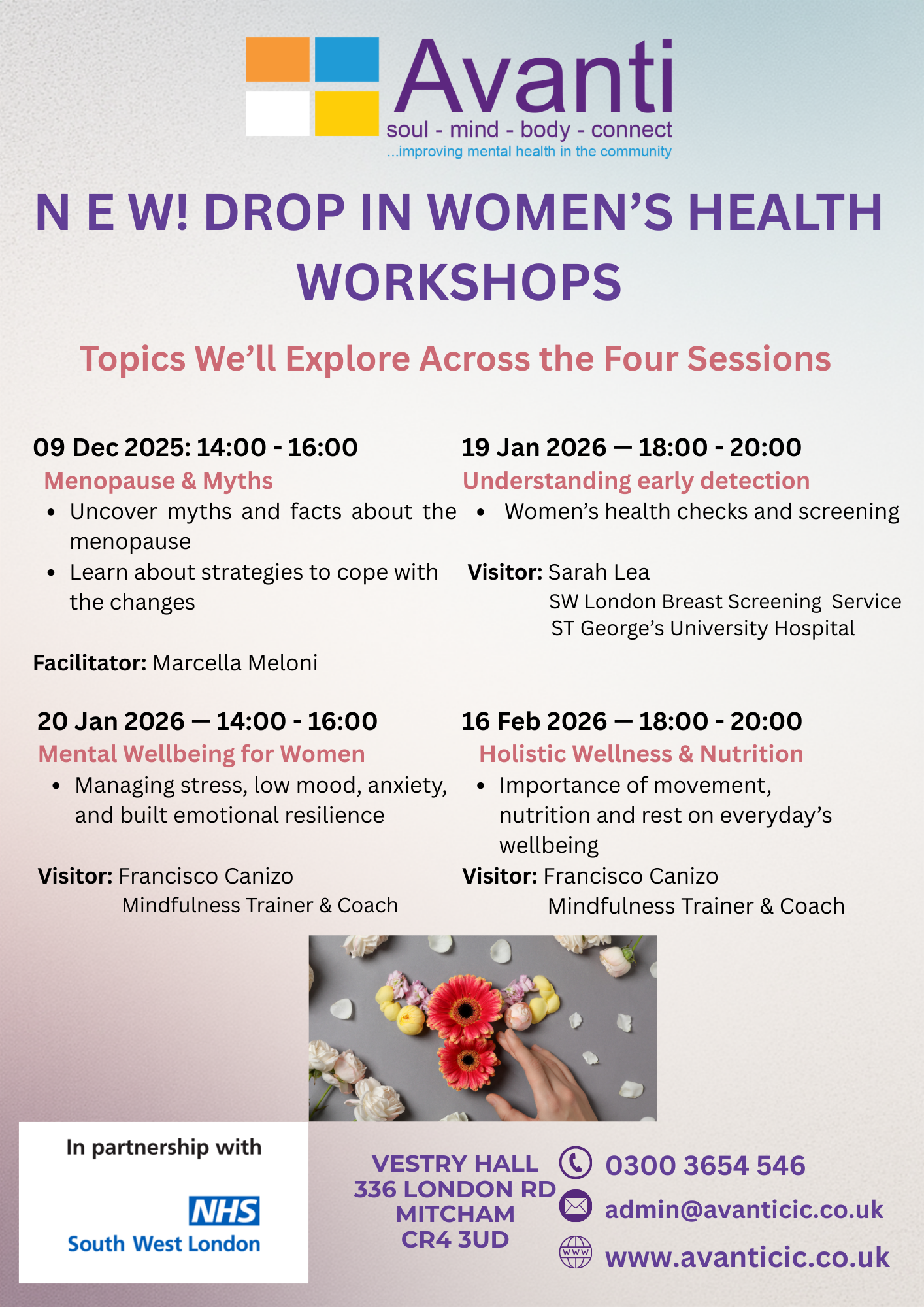 N E W! DROP IN WOMEN’S HEALTH WORKSHOPS