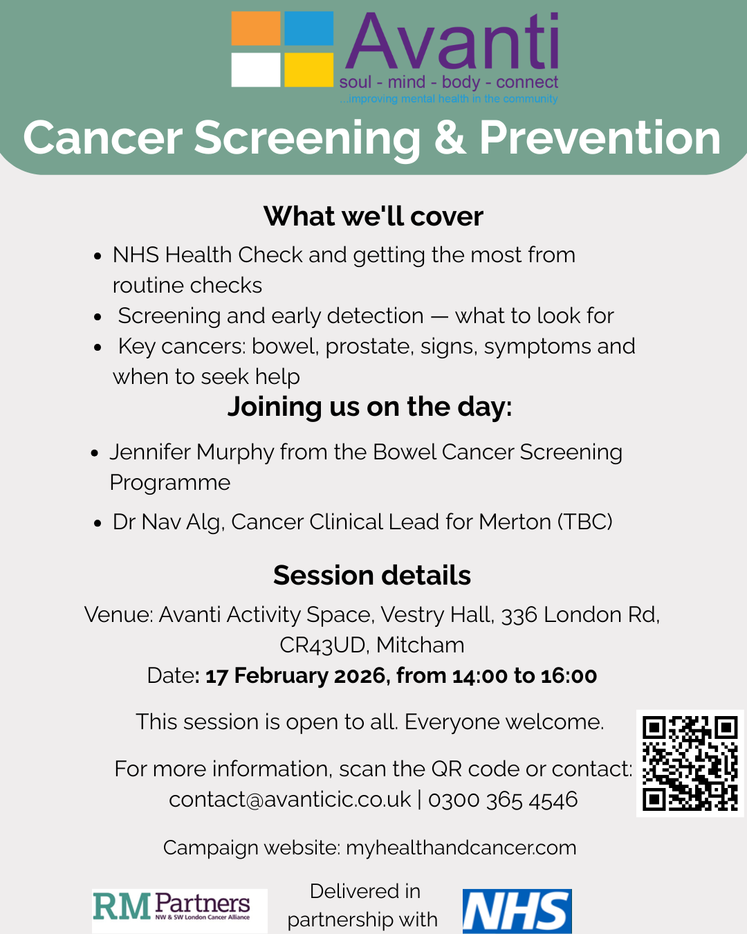 Friday 6 February, 10:30–13:30 at Vestry Hall, London Road, CR4 3UD.